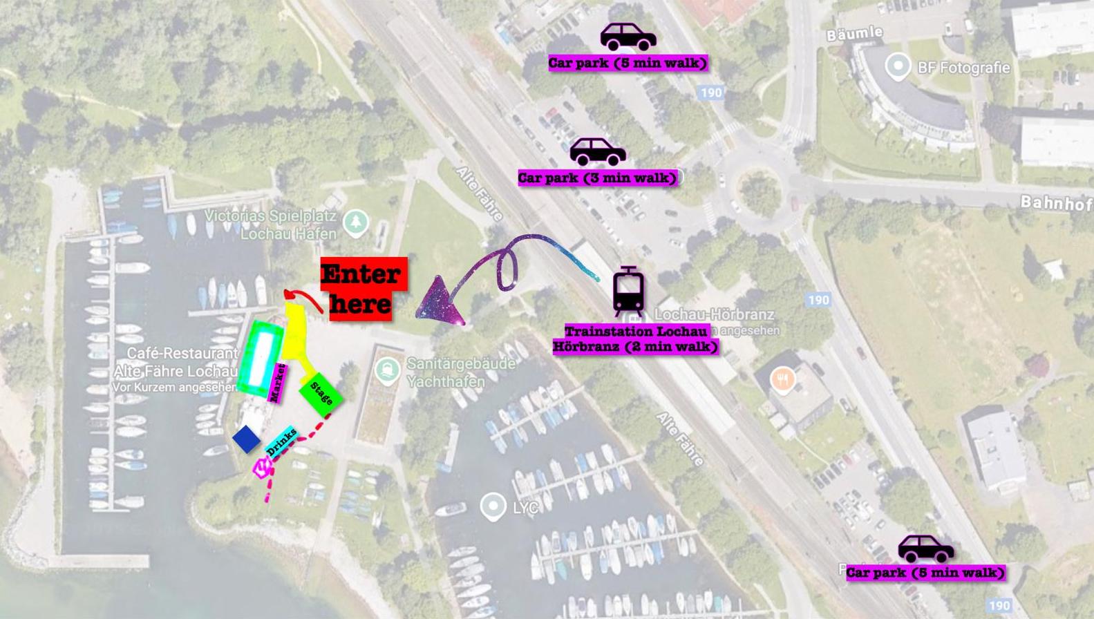 Bike/Walk: The Lake Constance cycle path runs directly past the festival site.